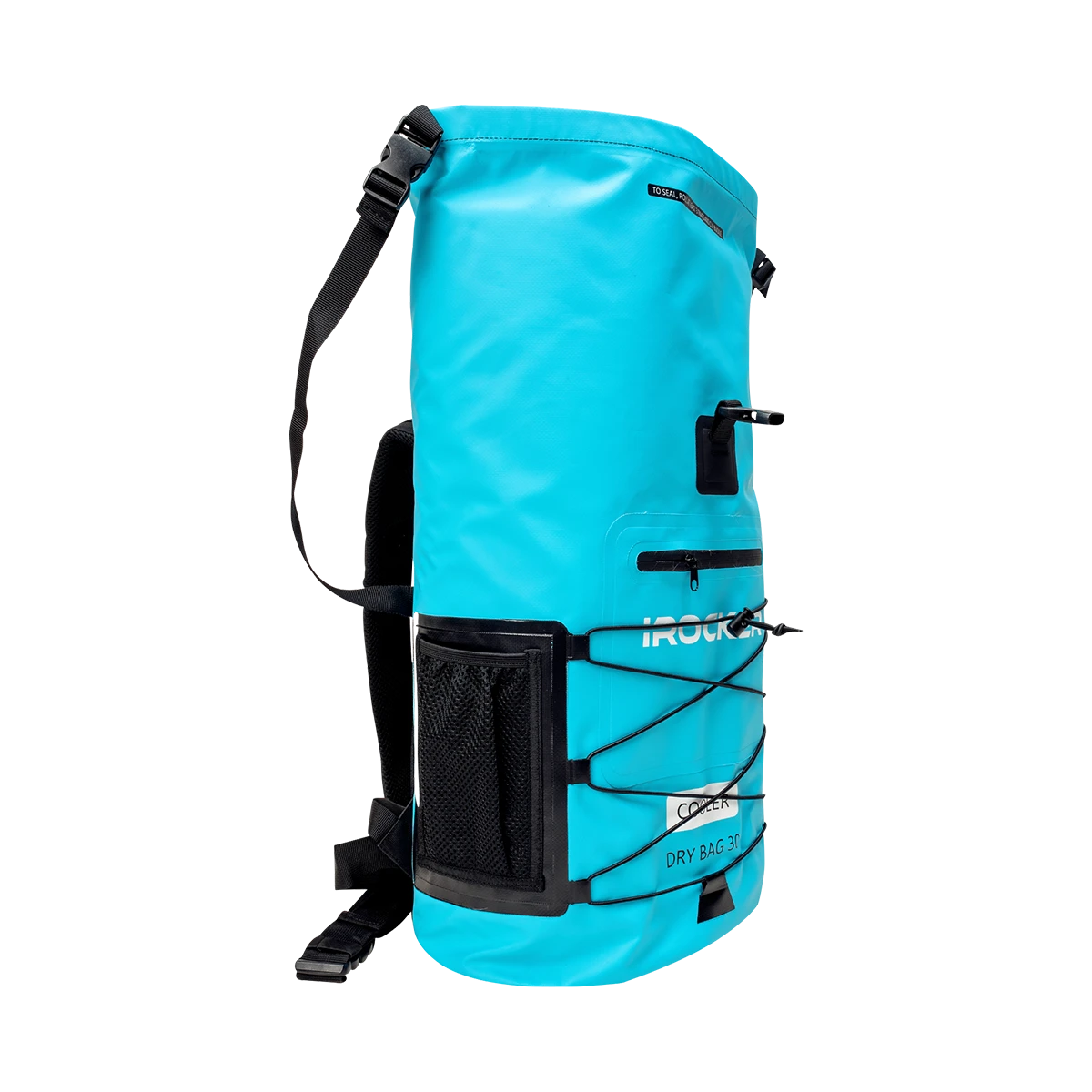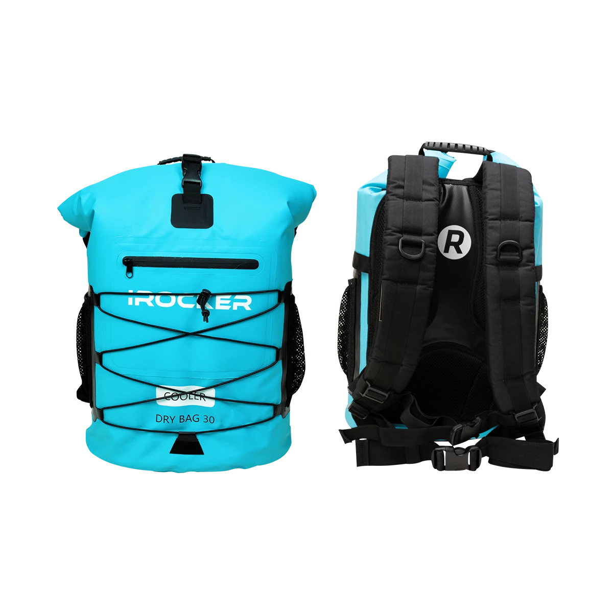Keep your drinks cold or your gear dry with this 30L, insulated, backpack cooler, by iROCKER. Large enough to hold up to 24 cans and 24 lbs of ice, this soft cooler will impress. With padded shoulder straps and waist belt, this backpack cooler was meant to travel. Whether you are headed out on the water, to the beach, or camping out in the great outdoors, this item is a must have for your next adventure.Â