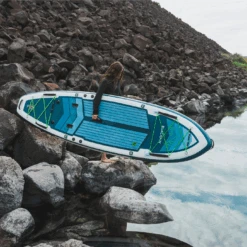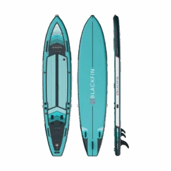 Our longest and most narrow SUP, the BLACKFIN MODEL V is 12’6″/3.8m long and 32″/81cm wide making this board the best for long distance paddling or touring in calm waters. This board is best for advanced paddlers and those over 5’7″ for best performance and maneuverability.