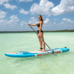 An extra-wide 33” base and broad tail make this SUP one of the most stable stand up paddle boards on the market. Its wide dimensions make it a touch slower, requiring a bit more paddling effort.